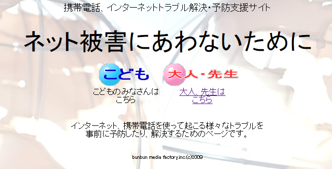 現代の子どもたちにとって、情報機器は必須のアイテム。しかし、そこには怖いトラブルが多数潜んでいます。そこで、情報化社会と情報機器の良さと問題点を正しく理解して使用するための教材を作りました。このサイトが少しでも皆さんの役に立ってくれることを願っています。